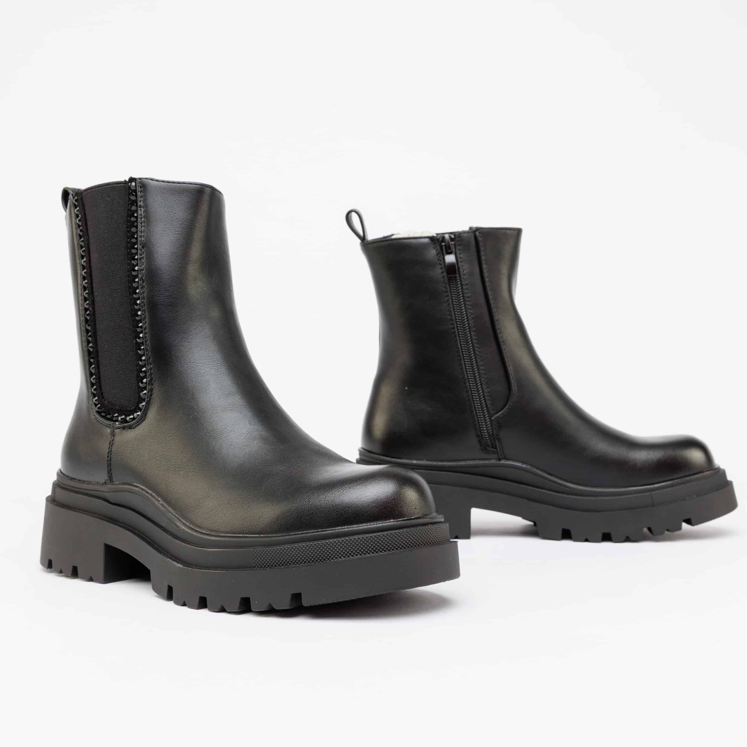حذاء نسائي شتوي أسود بترصيعات راقية