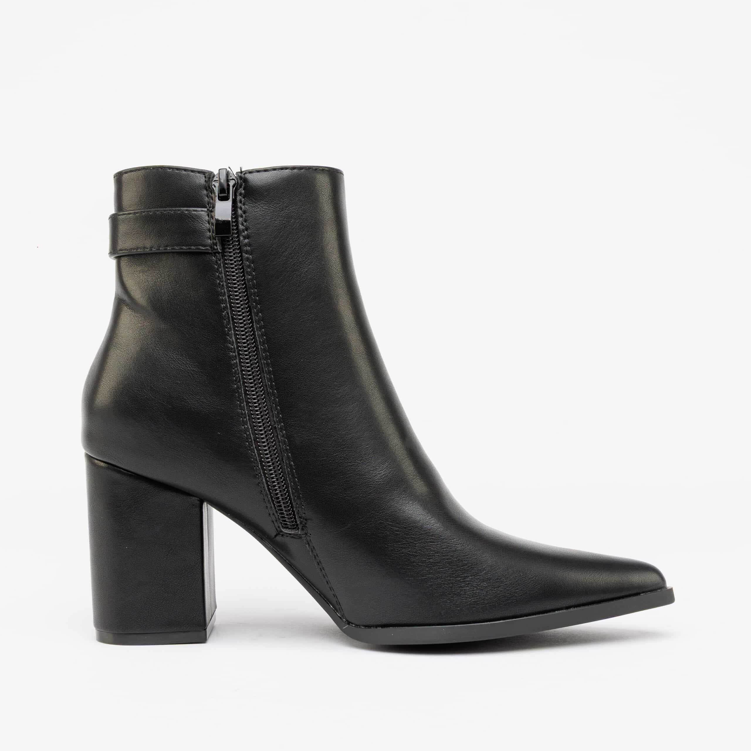 يأتي هذا الحذاء بتصميم راقي وحديث من الجلد الأسود الناعم الذي يضفي لمسة فخامة لا تُقاوم. اللون الأسود الكلاسيكي يجعله قطعة سهلة التنسيق مع جميع إطلالاتك الشتوية، من الجينز والمعاطف الصوفية إلى الفساتين الأنيقة والملابس الرسمية. ويتميز أيضاً بمقدمة مدببة تزيد من جمال القدم وتمنحها مظهراً أنثوياً طويلاً وجذاباً.