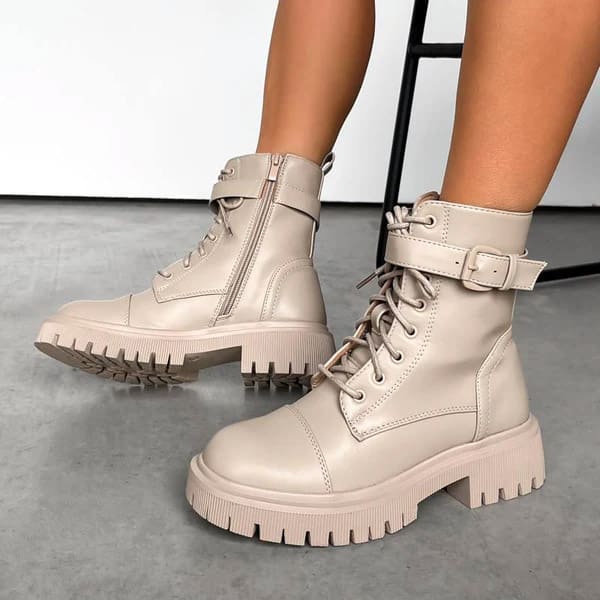 الحذاء مصمم على شكل بوت شتوي نسائي عصري مستوحى من تصميم Combat Boots، وهو من القطع الأكثر رواجًا فموضة الشتاء. النعل ديالو الغليظ (Platform) كيزيدو طابع جرأة وأناقة، وكيضمن ليك توازن ممتاز فوق أي سطح، سواء في الأيام الممطرة أو الباردة. هاد النوع من الأحذية معروف بقدرته الكبيرة على توفير الراحة والثبات مع الحفاظ على شكل أنيق كيليق بجميع الأعمار.