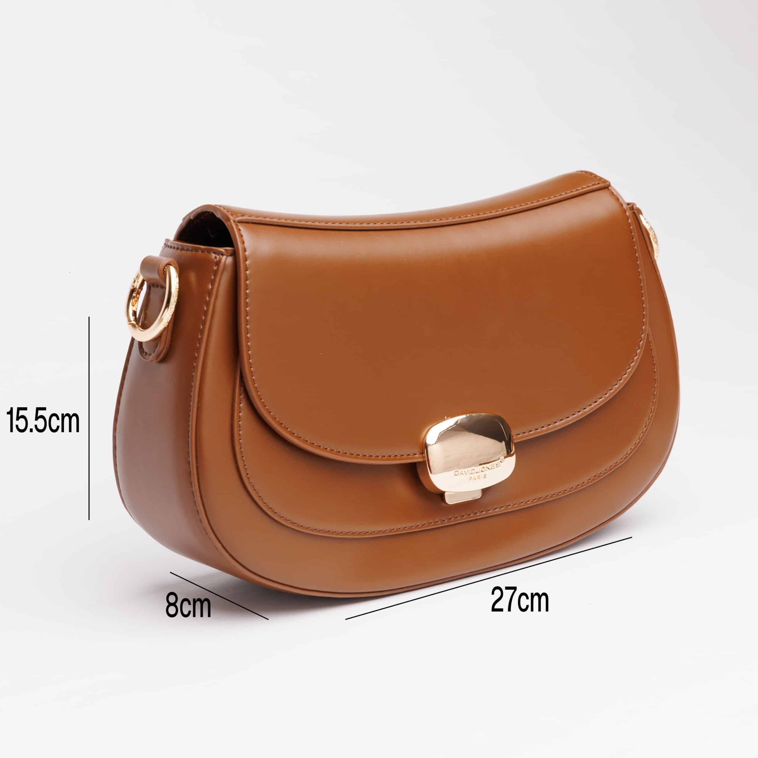إذا كنتِ تبحثين عن حقيبة تبتعد عن التصاميم المربعة التقليدية وتمنحك شكلاً أنثويًا وناعماً، فإن حقيبة DAVID JONES بتصميم “Saddle” هي خيارك الأمثل. هذا التصميم المستوحى من الفروسية عاد بقوة ليكون “التريند” الأبرز في 2025. إنها الحقيبة التي تقول عنكِ أنكِ صاحبة ذوق رفيع وكلاسيكي، ولكنكِ تحبين الراحة والعملية في نفس الوقت.