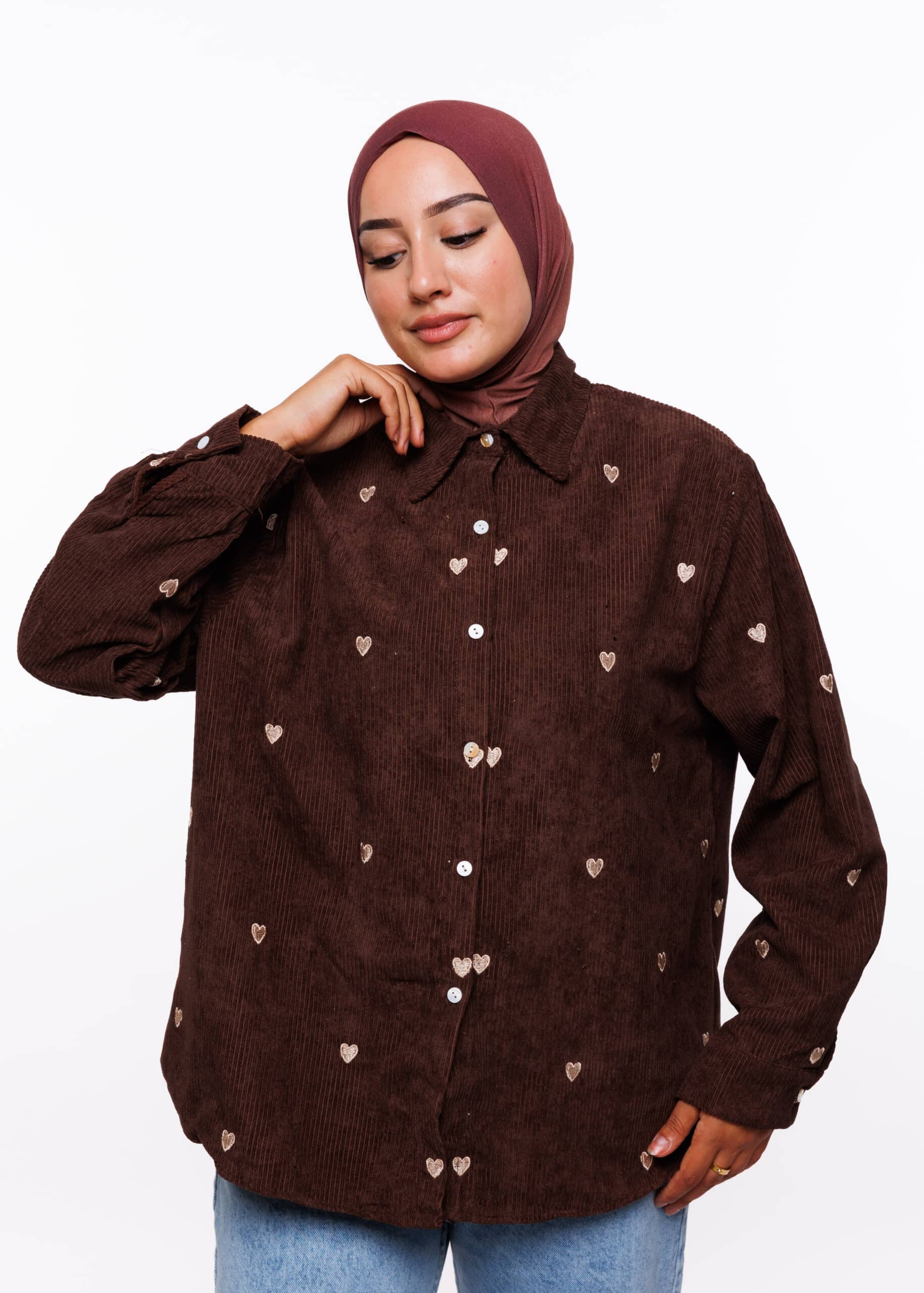 أما من حيث التصميم، فهي تأتي بقصّة فضفاضة قليلاً تمنح الجسم حرية وانسيابية جميلة، مع ياقة مستديرة مريحة تُبرز الرقبة بطريقة ناعمة وغير مبالغ فيها. الأكمام الطويلة تمنحك الدفء اللازم في الأيام الباردة، كما تضيف لمسة من الأناقة والراحة في الوقت نفسه. تم تزيين السترة بتطريزات ناعمة أو نقوش صغيرة تضفي عليها لمسة مميزة تعكس الذوق الرفيع والبساطة الراقية.