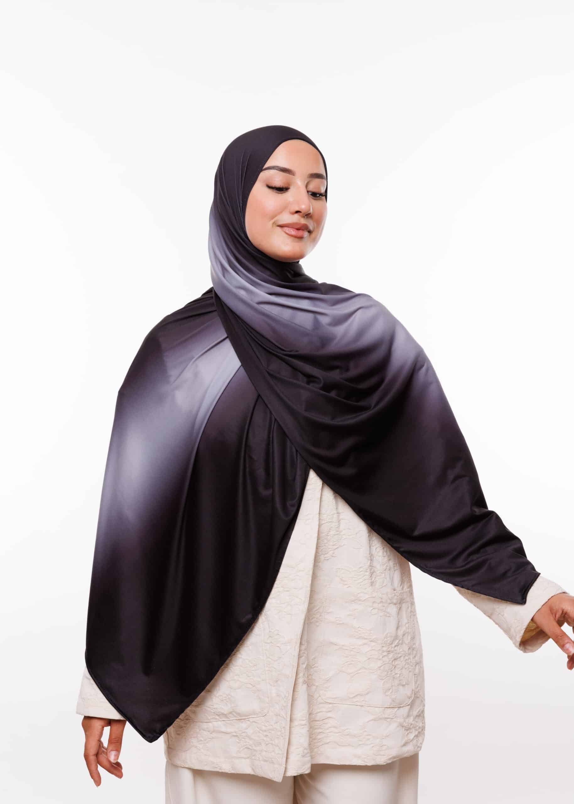 يمكنك ارتداء هذا الشال مع العبايات الخليجية، الفساتين الكاجوال، أو حتى الملابس الرسمية لإضفاء لمسة أنيقة. الألوان المتدرجة تمنحك مرونة أكبر في التنسيق مع مختلف قطع الملابس، مما يجعلها خيارك الأمثل للظهور دائماً بأناقة متجددة.