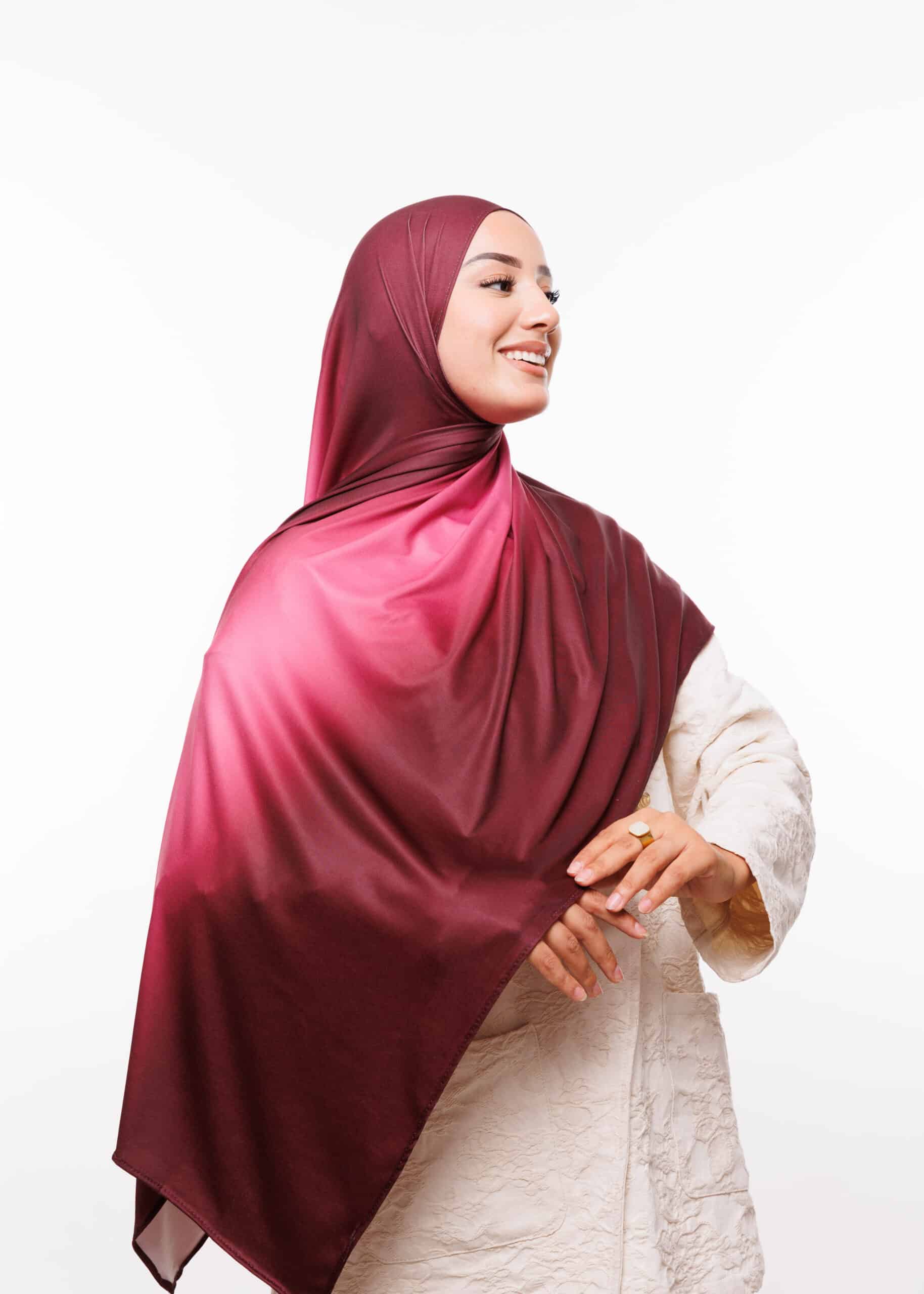 يمكنك ارتداء هذا الشال مع العبايات الخليجية، الفساتين الكاجوال، أو حتى الملابس الرسمية لإضفاء لمسة أنيقة. الألوان المتدرجة تمنحك مرونة أكبر في التنسيق مع مختلف قطع الملابس، مما يجعلها خيارك الأمثل للظهور دائماً بأناقة متجددة.