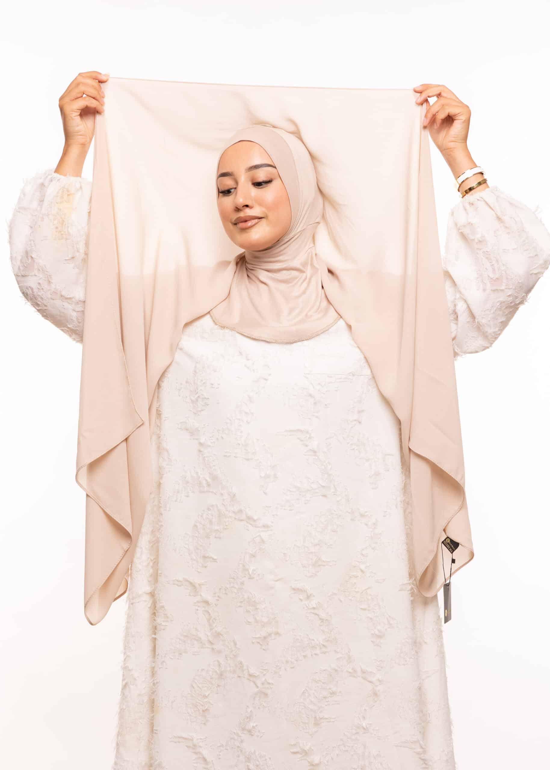 صُنع الثوب من قماش كريب عالي الجودة يتمتع بمواصفات مميزة من حيث المتانة والنعومة والانسيابية. كما أن القُبعة الداخلية مصنوعة من قماش Lycra المعروف بمرونته وتماسكه الجيد على الرأس، مما يجعله مريحًا أثناء الارتداء لفترات طويلة، دون التسبب في انزعاج أو ضغط. القماش الداخلي يساعد أيضًا في تثبيت الحجاب أو الغطاء دون الحاجة إلى دبابيس أو ملحقات إضافية، مما يجعل عملية اللبس سهلة وسريعة.