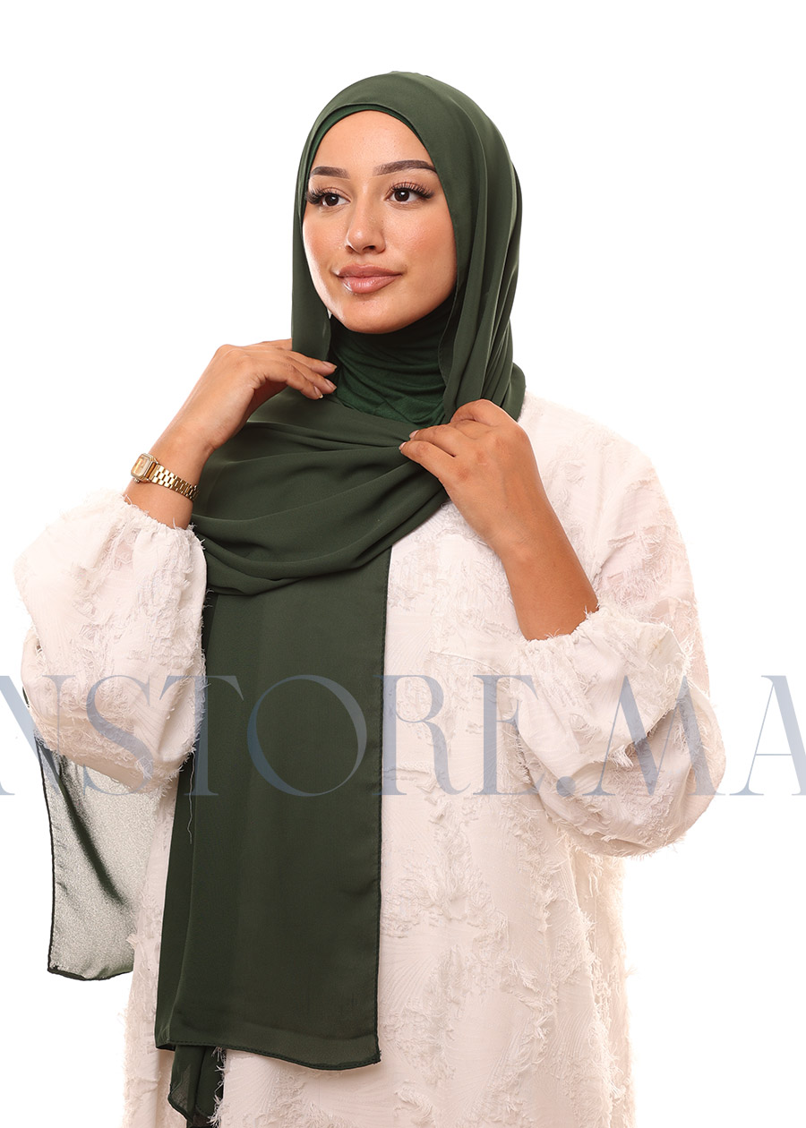شال كريب حريري بالبوني “النينجا” -أخضر زيتي –