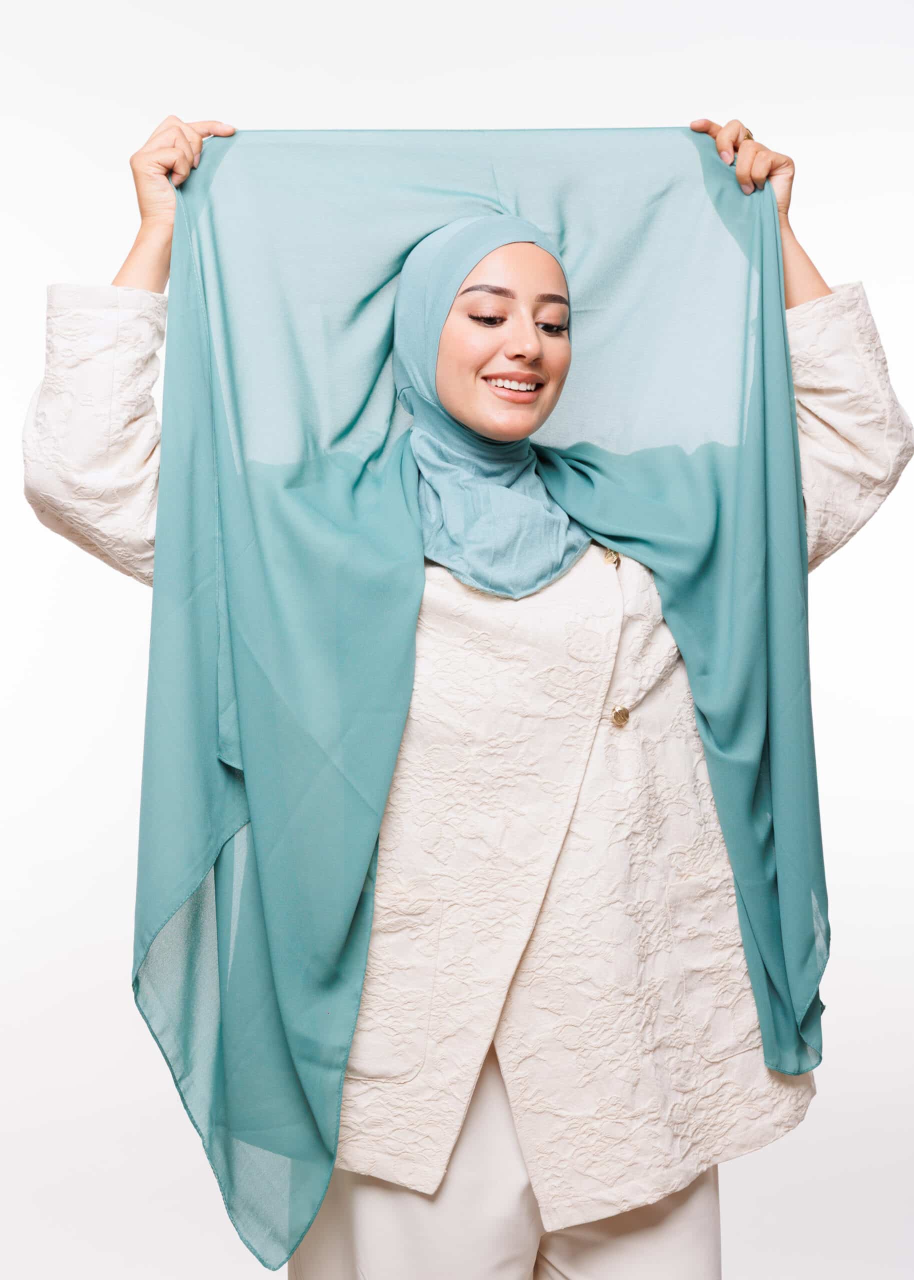 التصميم العام للثوب بسيط وأنيق، يناسب الذوق الرفيع، ويعكس الحشمة والوقار. اللون أخضر مائي النقي يعطي مظهرًا نظيفًا ومشرقًا، ويضفي على من ترتديه طابعًا من الطهارة والسكينة، وهو مناسب جدًا للمناسبات الدينية والأجواء الروحية. التصميم يتماشى أيضًا مع الذوق العصري، حيث يجمع بين البساطة والوظيفة العملية.