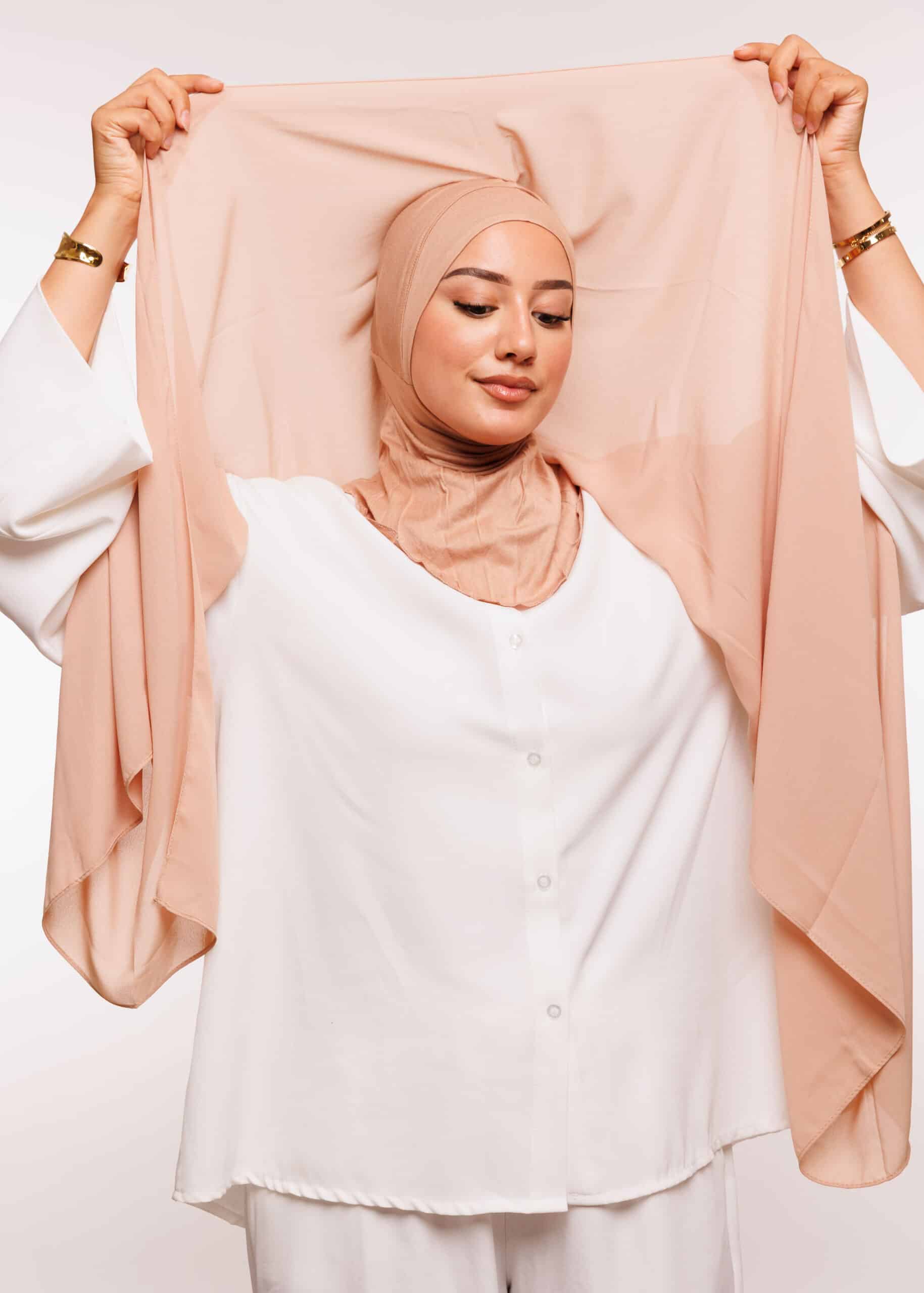 صُنع الثوب من قماش كريب عالي الجودة يتمتع بمواصفات مميزة من حيث المتانة والنعومة والانسيابية. كما أن القُبعة الداخلية مصنوعة من قماش Lycra المعروف بمرونته وتماسكه الجيد على الرأس، مما يجعله مريحًا أثناء الارتداء لفترات طويلة، دون التسبب في انزعاج أو ضغط. القماش الداخلي يساعد أيضًا في تثبيت الحجاب أو الغطاء دون الحاجة إلى دبابيس أو ملحقات إضافية، مما يجعل عملية اللبس سهلة وسريعة.