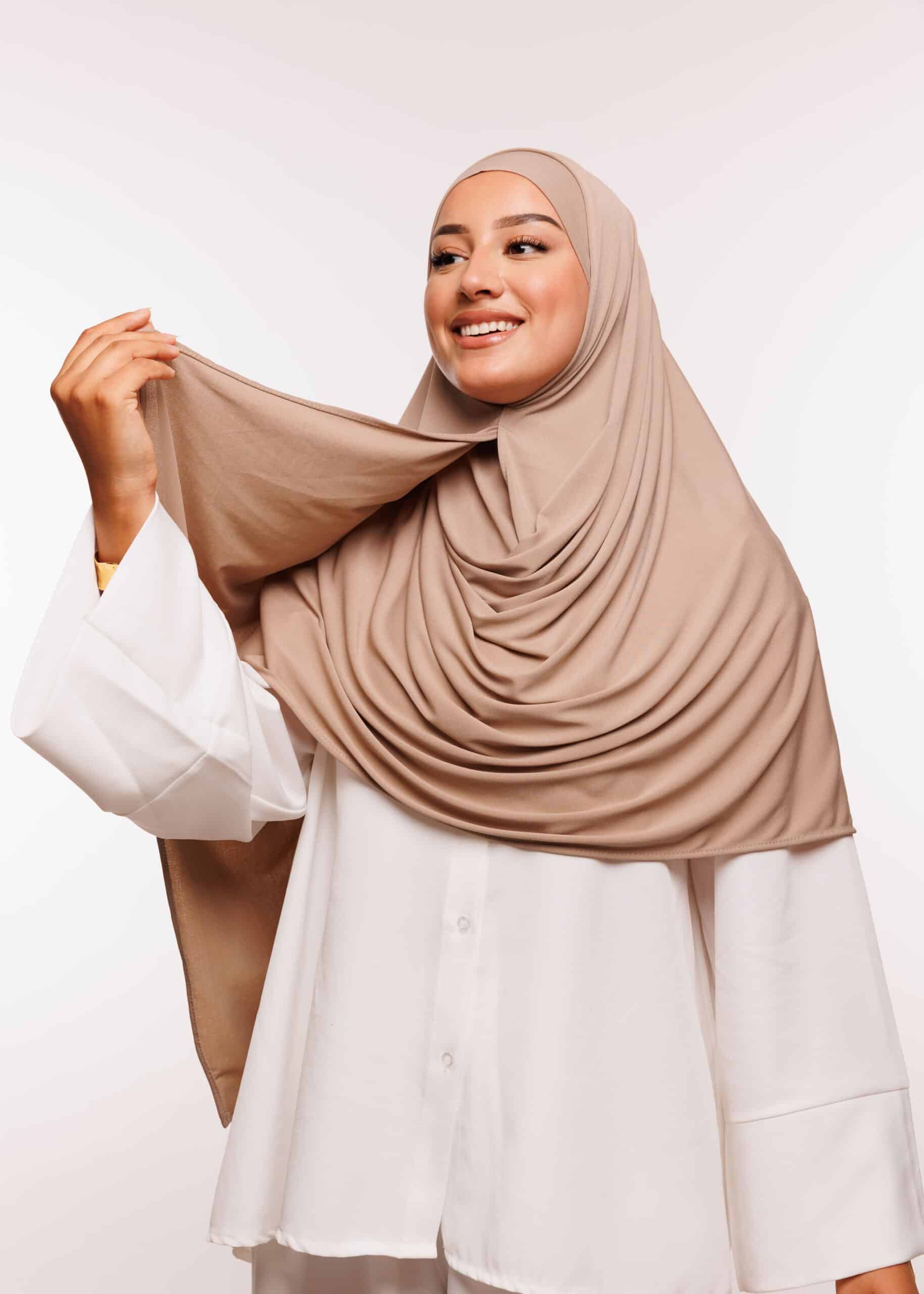 تم تصنيع هذا الشال من قماش بيزو بيزو غير شفاف، مما يجعله مثاليًا للنساء الباحثات عن الاحتشام دون التنازل عن الأناقة. القماش مقاوم للانزلاق، مما يسهل تثبيته على الرأس بدون الحاجة لاستخدام دبابيس كثيرة، ويوفر ثباتًا طوال اليوم حتى مع الحركة الكثيرة.
