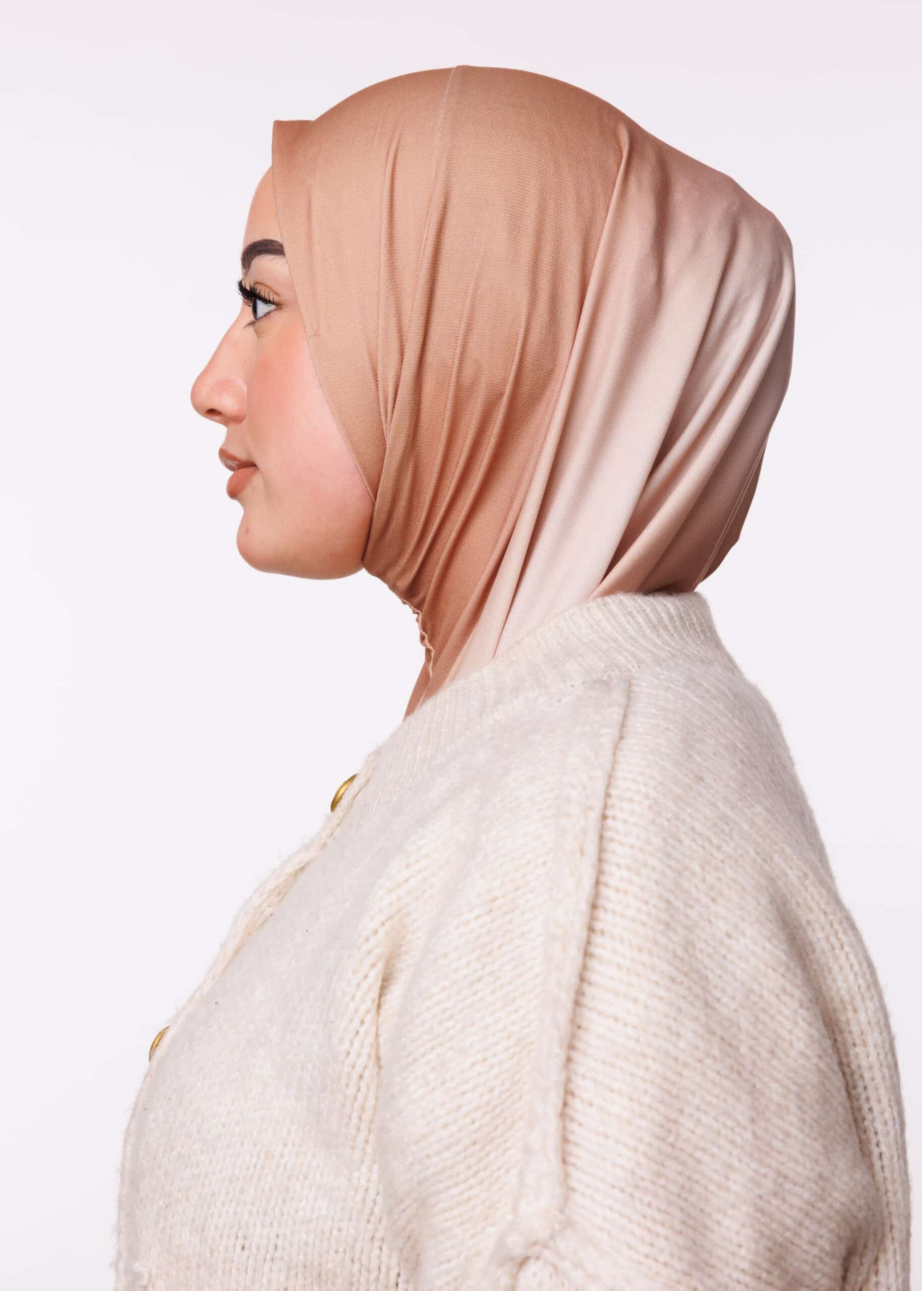 تتميّز الطبقية بثباتها الممتاز على الرأس دون الحاجة إلى دبابيس أو تعديلات مستمرة، بفضل قصّتها المدروسة وخامة الجيرسي المرنة. هذا الأمر يوفر لك راحة إضافية وثقة أثناء الحركة، سواء كنت في يوم عمل طويل أو في مناسبة خاصة. كما أن التصميم يمنحك حرية كبيرة في التنسيق مع مختلف الملابس، من المعاطف الشتوية إلى الفساتين والعبايات.