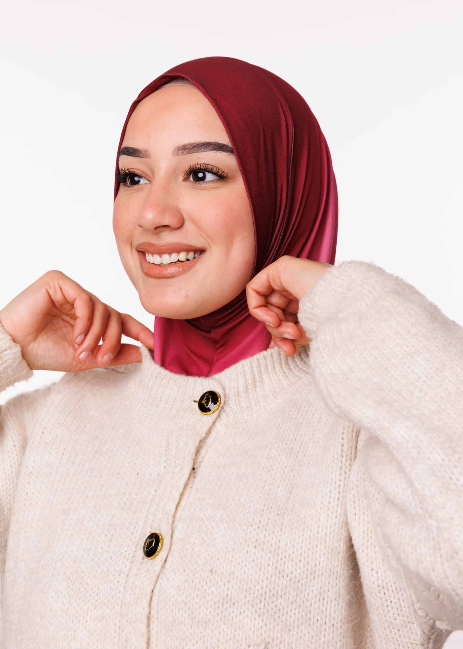 تتميّز الطبقية بثباتها الممتاز على الرأس دون الحاجة إلى دبابيس أو تعديلات مستمرة، بفضل قصّتها المدروسة وخامة الجيرسي المرنة. هذا الأمر يوفر لك راحة إضافية وثقة أثناء الحركة، سواء كنت في يوم عمل طويل أو في مناسبة خاصة. كما أن التصميم يمنحك حرية كبيرة في التنسيق مع مختلف الملابس، من المعاطف الشتوية إلى الفساتين والعبايات.