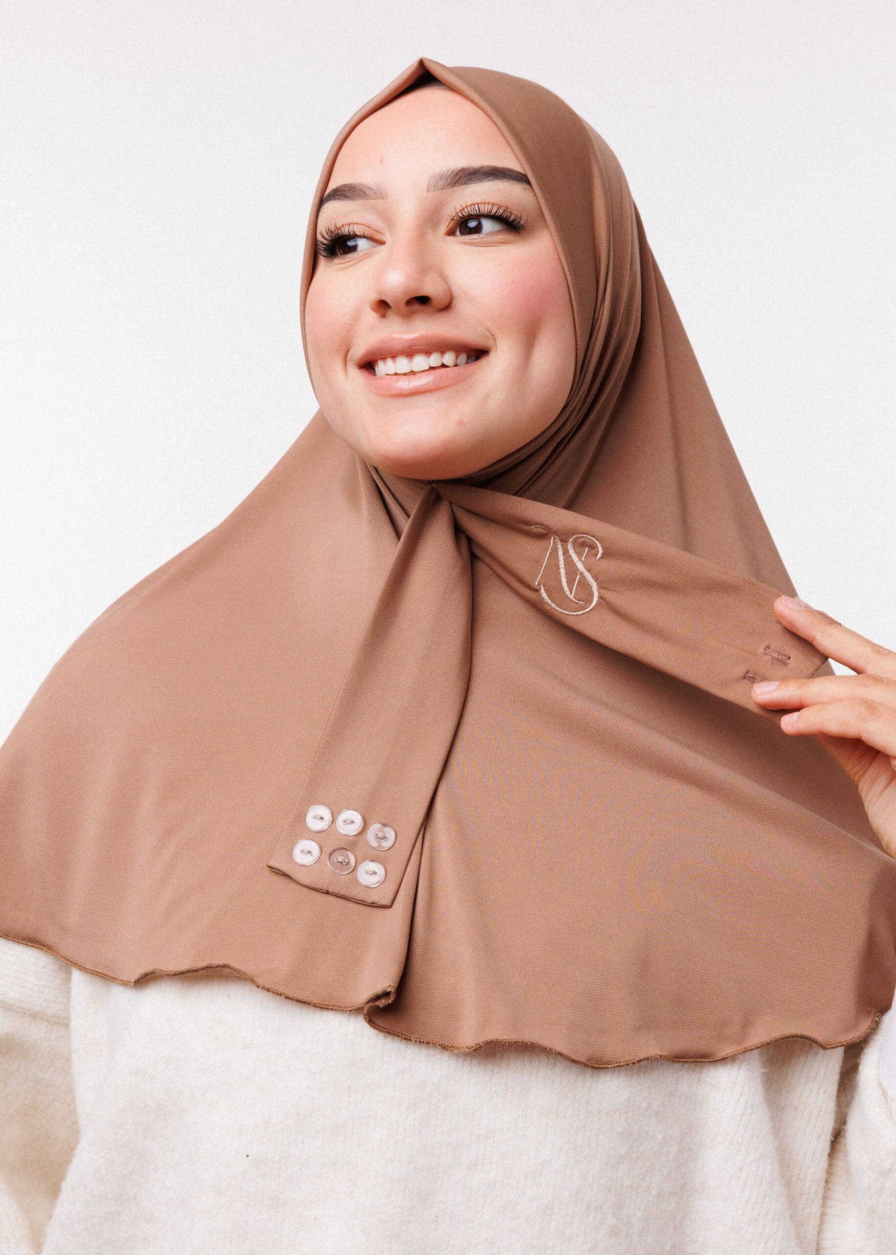 من أجمل التفاصيل اللي كتميز هاد طبقية جيرسي هو وجود نقشة مميزة في العنق من الجانب NS، وهي شعار متجرنا NORTH STORE. هذه اللمسة الراقية تعطي للحجاب قيمة إضافية وإحساس بالفخامة، وتظهر داك الأسلوب العصري اللي يجمع بين البساطة والستايل. اللمسة المطرزة رقيقة وغير مبالغ فيها، لكنها بارزة بما يكفي لتعطي للحجاب هوية واضحة وعلامة موثوقة.